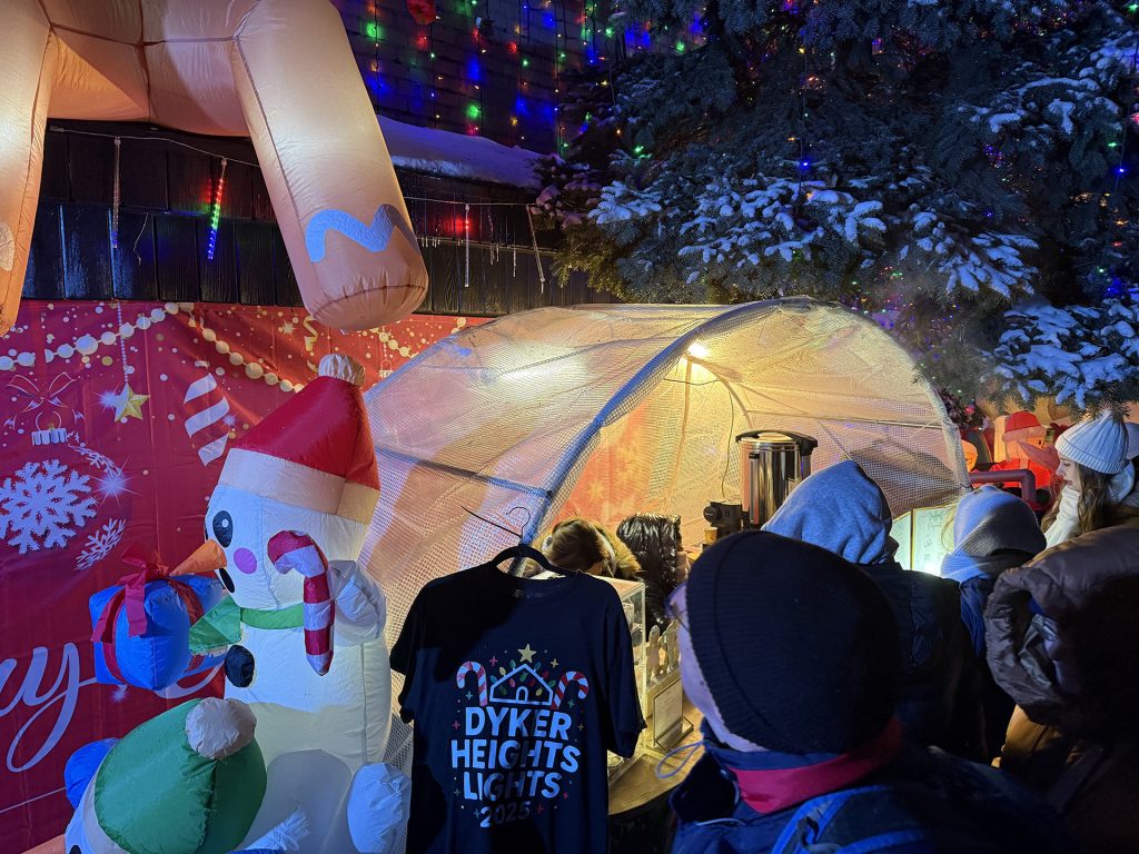 ホットチョコレートが売られたり、記念のTシャツが売られたり(笑)